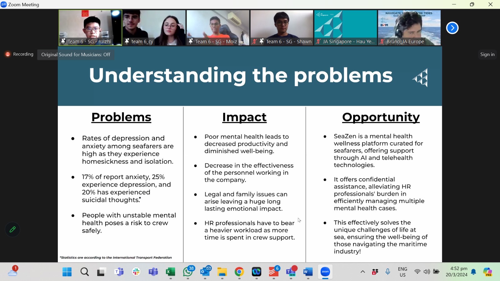 Three of our Secondary 4 students (Moiz from 4G, Rui Zhi from 4F, and Shawn from 4F) embarked on a learning journey to BSM Singapore to explore the maritime industry. During this experience, they participated in the selection process for the Global Online Maritime Innovation Hackathon, jointly organized by Junior Achievement and BSM. Out of 20 teams, Bukit View Secondary was proud to be one of four teams selected to represent Singapore. Teamed up with students from Cyprus, they collaborated online to develop a solution for the challenge statement: “Develop an innovative business idea on how AI can transform the work of maritime professionals for the better.” Their winning solution was a mental health wellness platform designed specifically for seafarers, integrating AI and telehealth to support mental health through screening and identifying those needing assistance. We are proud to share that the BVSS-Cyprus team emerged as the overall winner of the challenge.