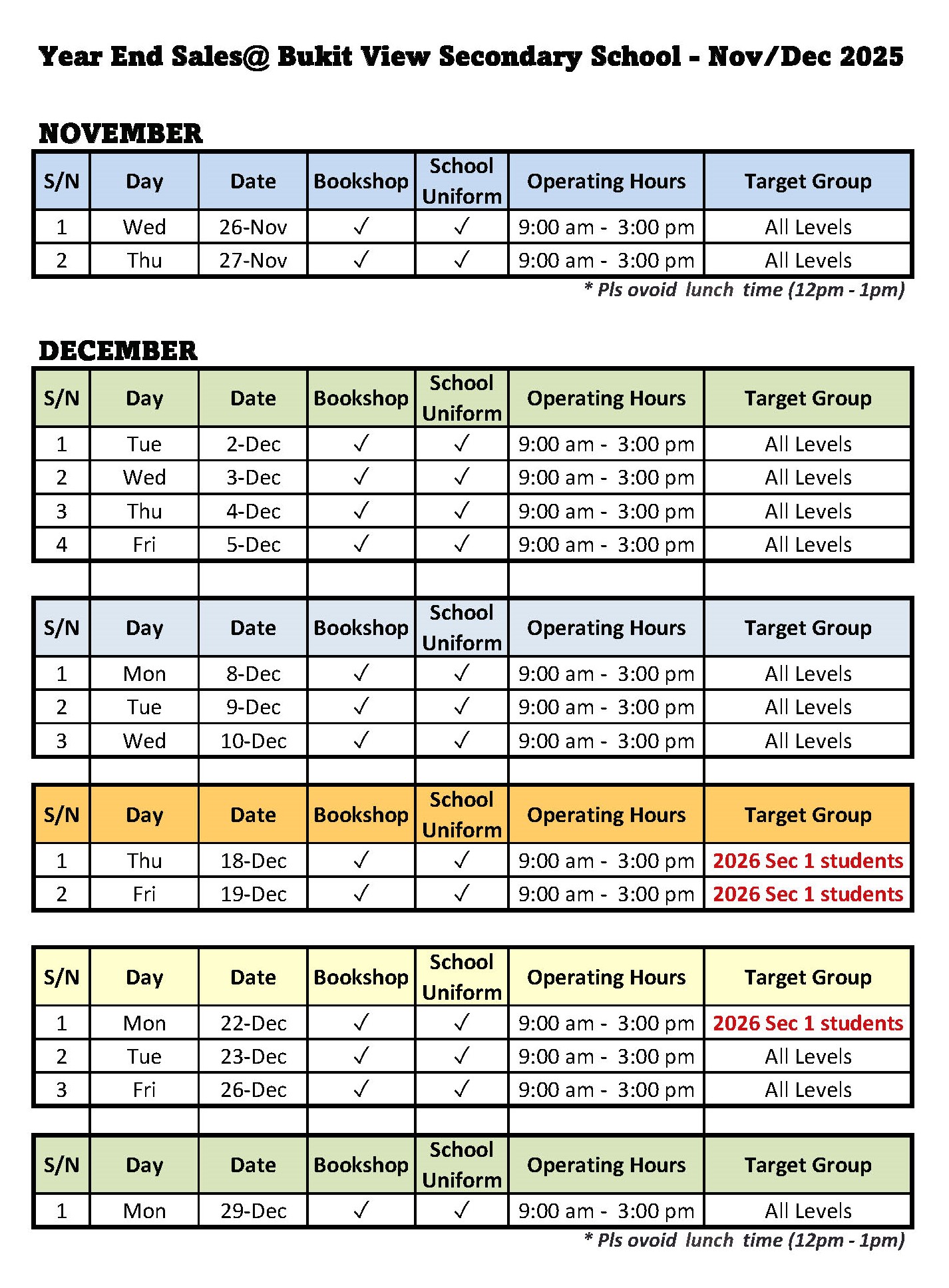 Parents preferring to buy directly may do so during the Year-End Walk-In Sales &